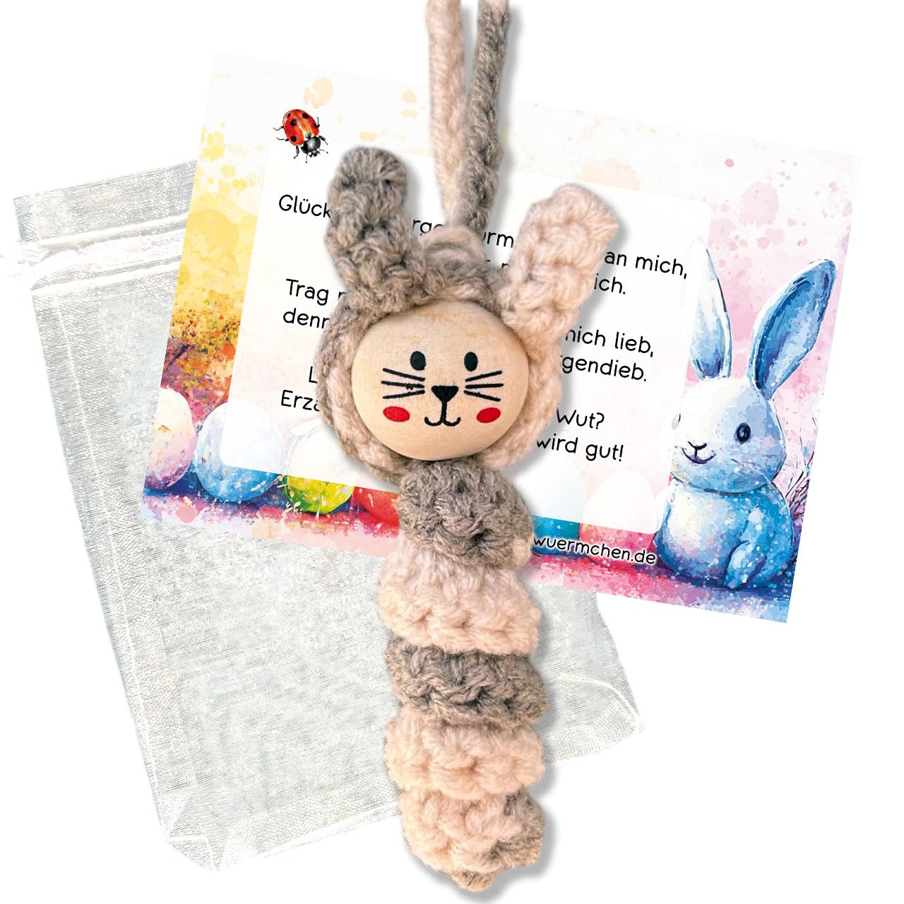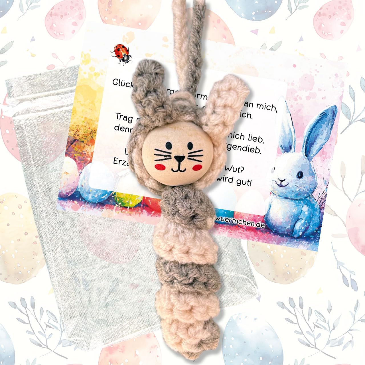 Bereiten Sie Ihren Liebsten Freude mit diesem charmanten Sorgenwürmchen Osterhasen. Ideal als Ostergeschenk, süßes Mitbringsel oder um jemandem ein Lächeln ins Gesicht zu zaubern – mit diesem niedlichen Osterhasen liegen Sie immer richtig.