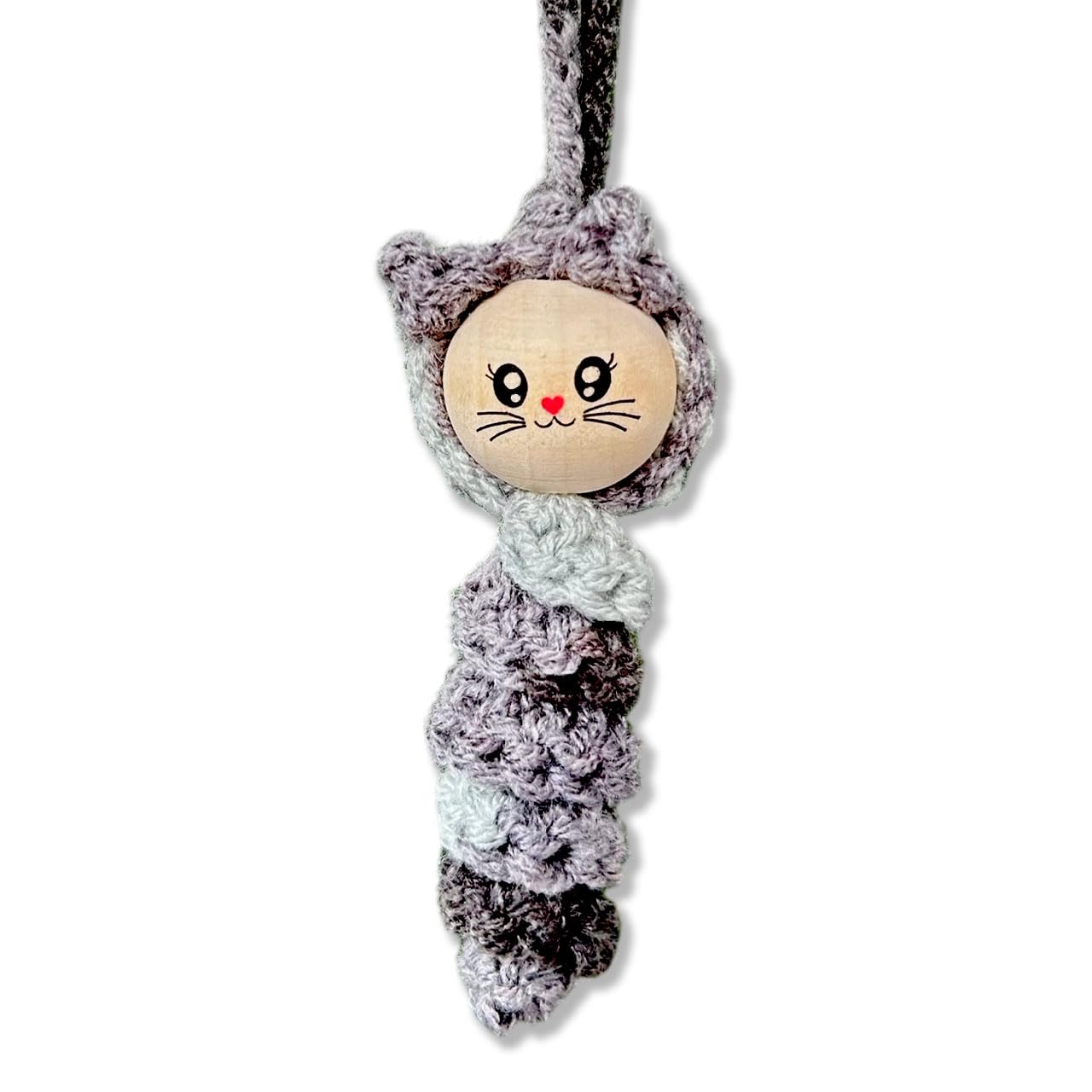 Glückswürmchen Sorgenwürmchen Katze schwarz-grau Worry Worm handmade gehäkelt