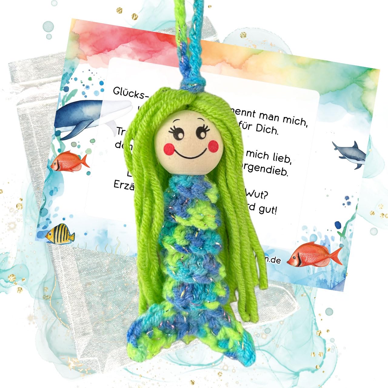 Sorgenwürmchen Meerjungfrau mit Glitzerwolle – Der schillernde Begleiter für kleine und große Sorgen!