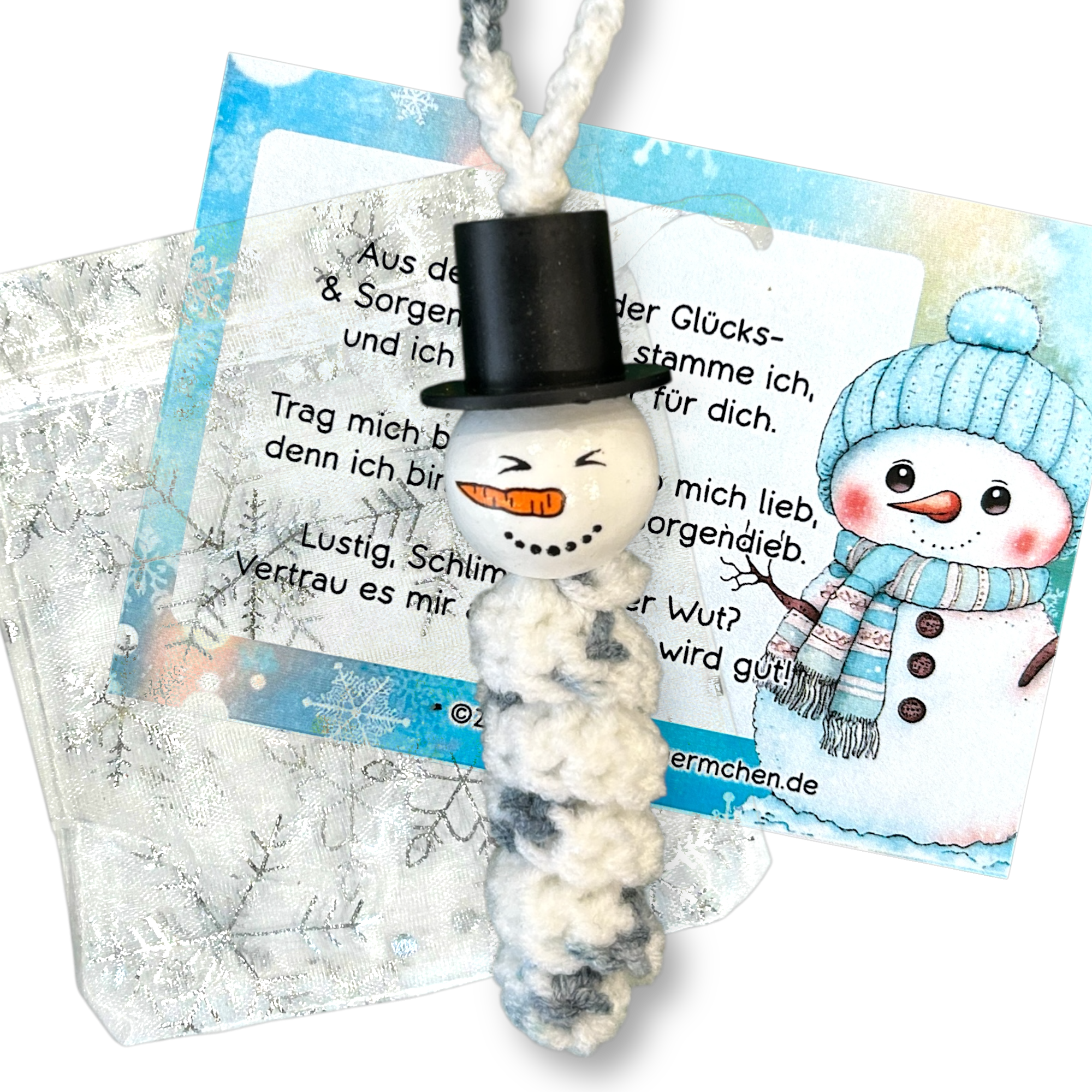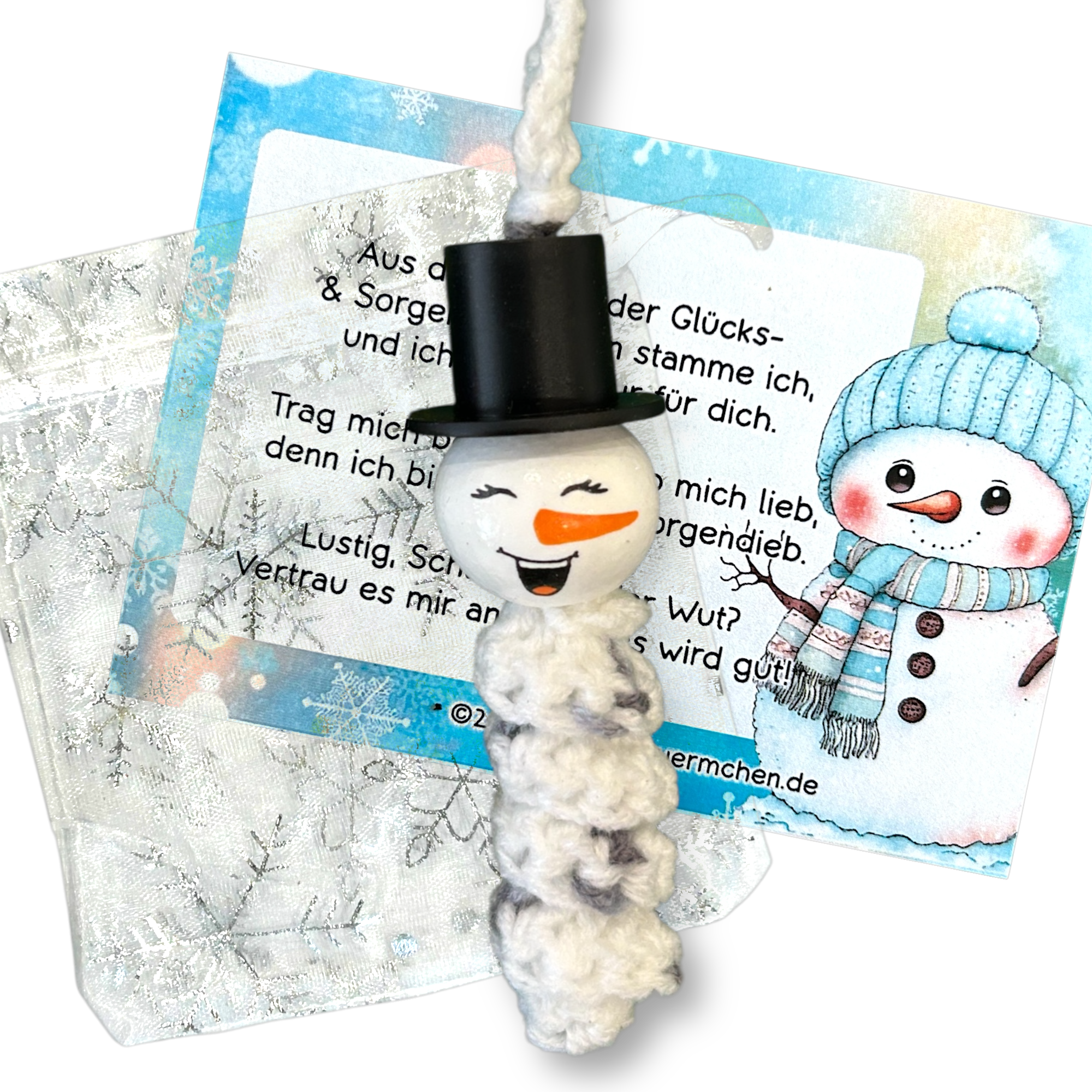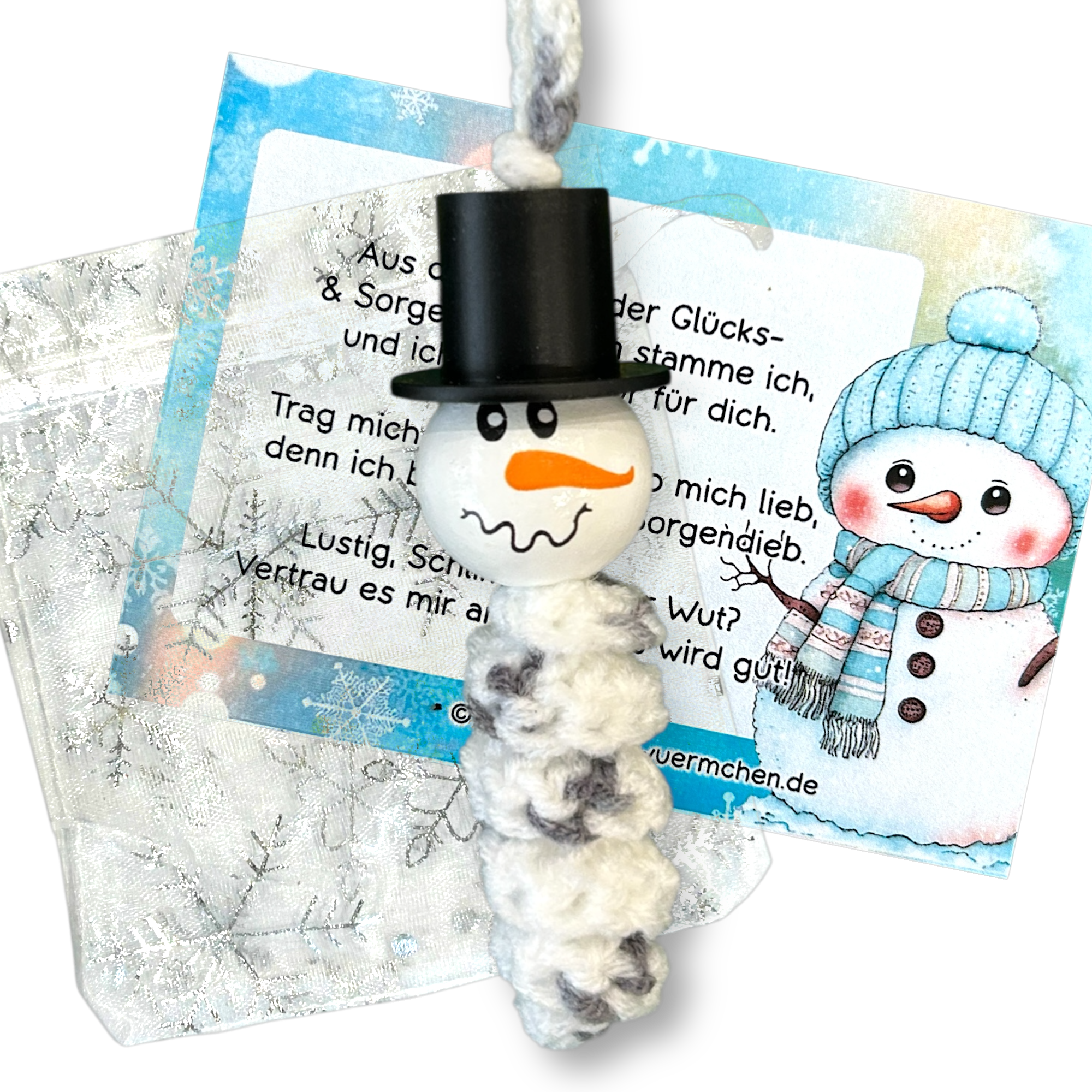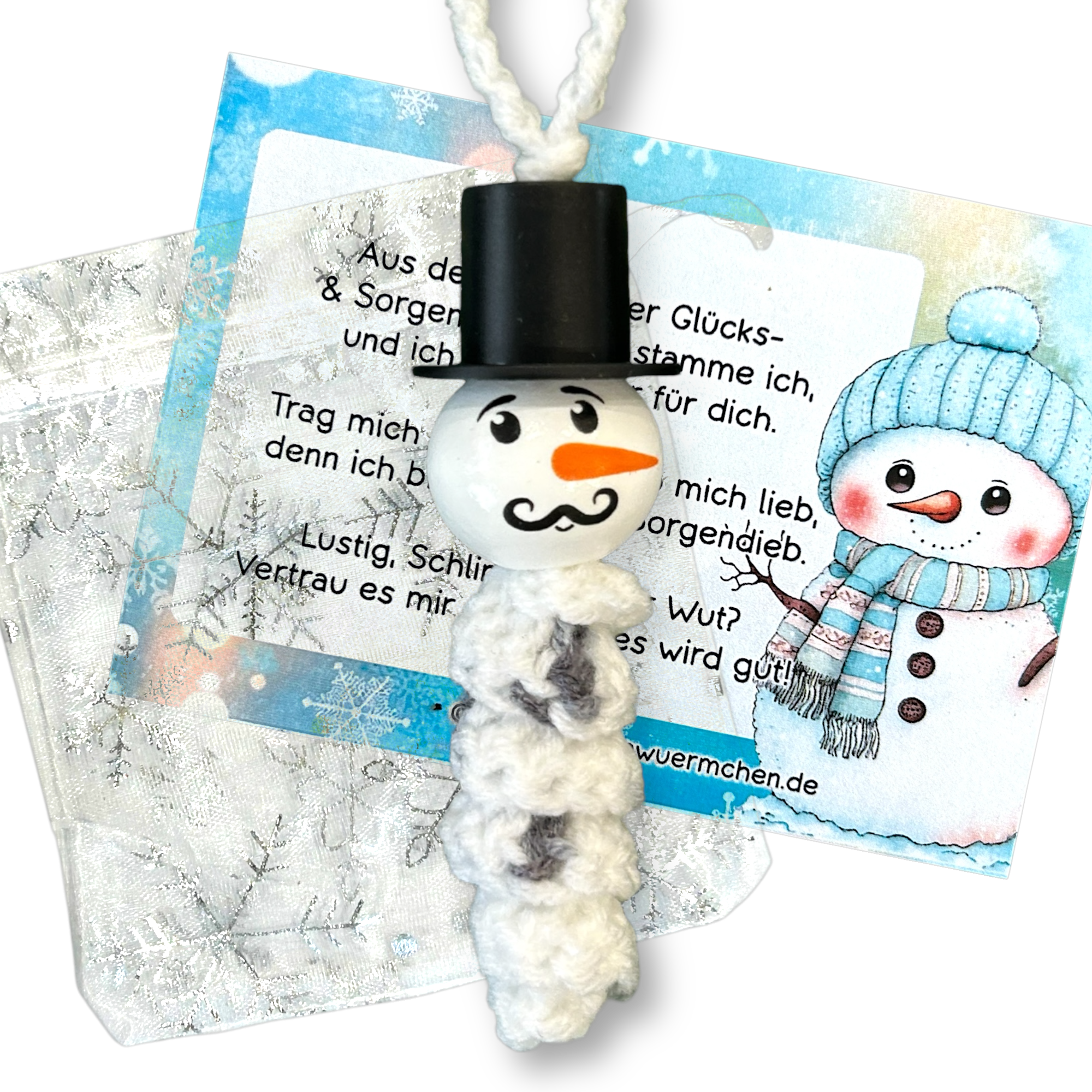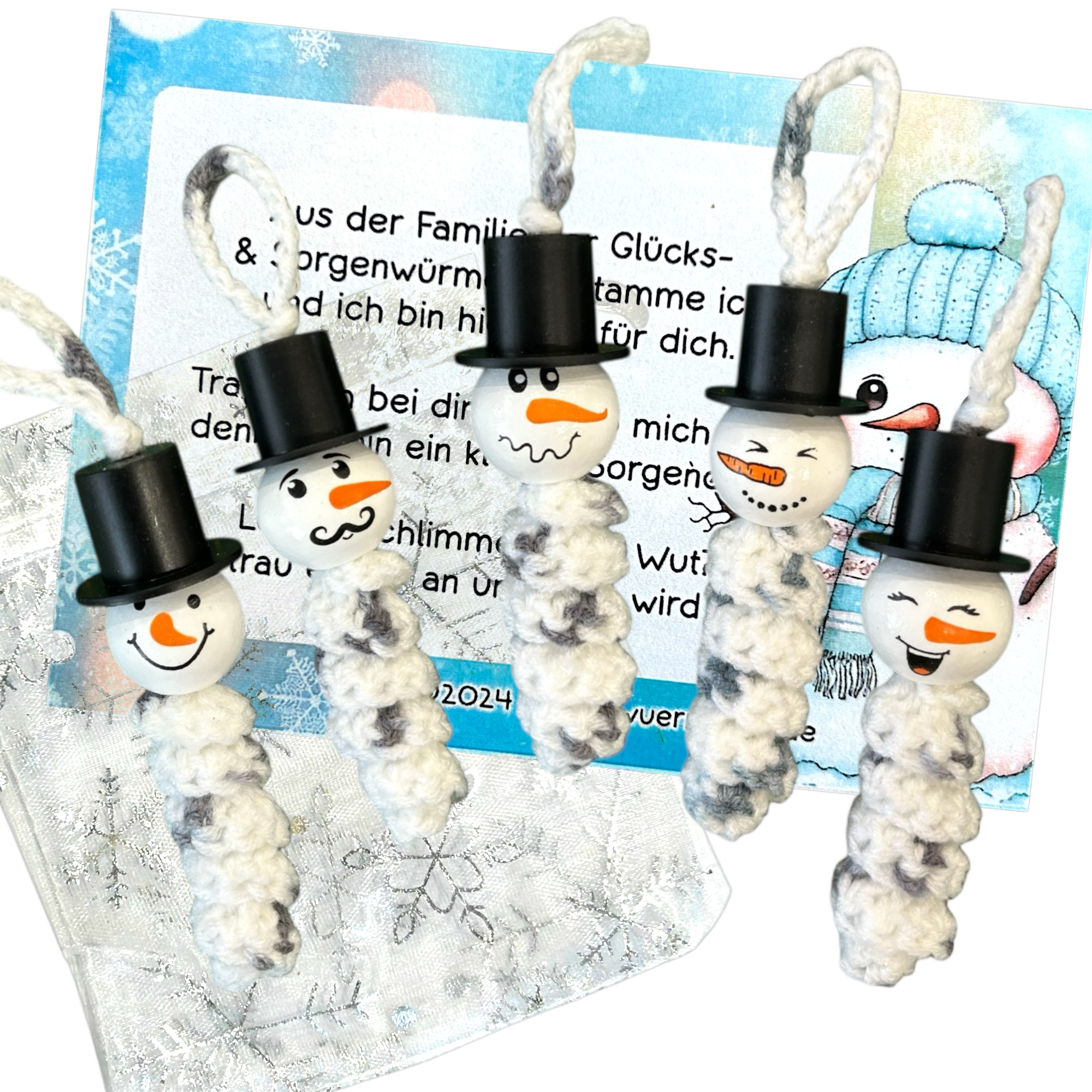 Verleihen Sie Weihnachten eine besondere Note mit dem dem niedlichen Glückswürmchen Sorgenwürmchen Schneemann Anhänger 5er Set 🎄