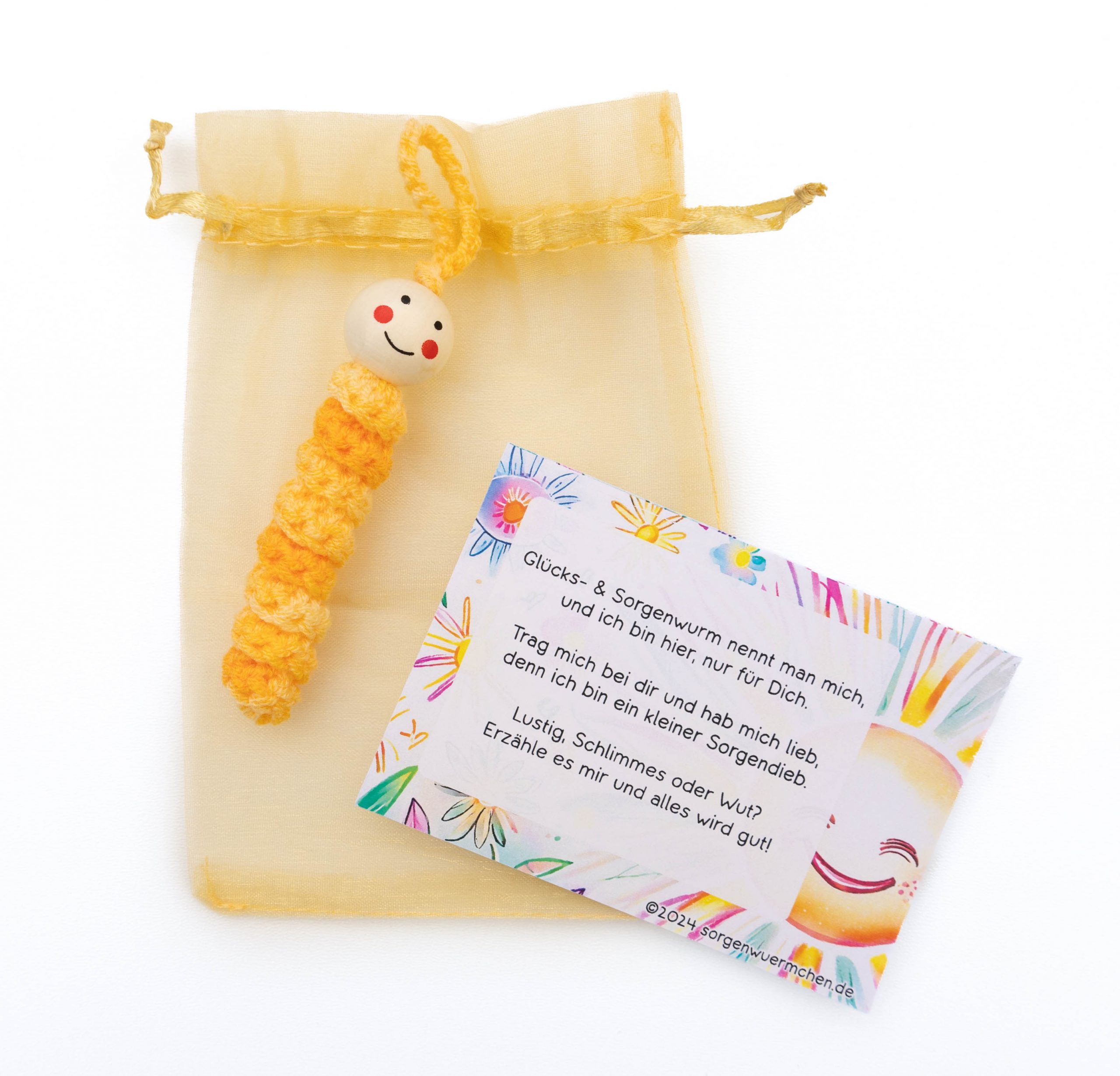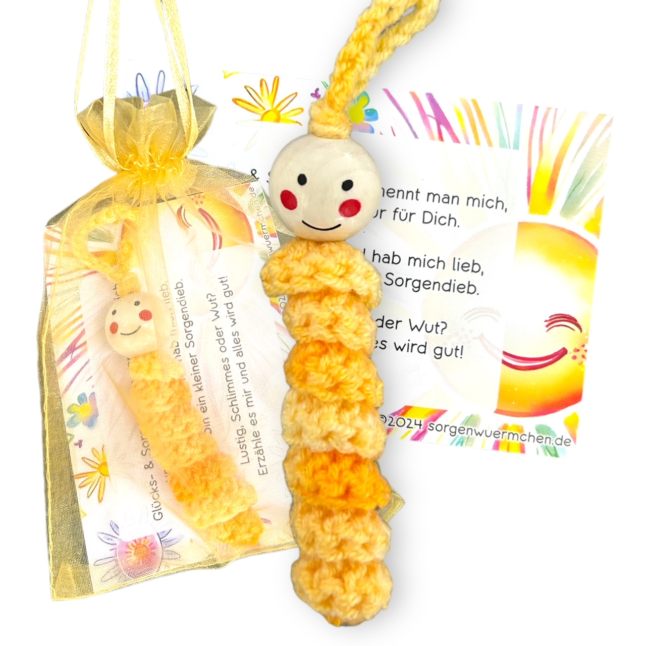 Unsere Marke steht für Qualität und Liebe zum Detail. Jedes Sorgenwürmchen Glückswürmchen wird sorgfältig von Hand gefertigt, um sicherzustellen, dass jedes einzelne Produkt den höchsten Ansprüchen gerecht wird. Wir verwenden nur die besten Materialien, um sicherzustellen, dass Sie lange Freude an Ihrem Glückswürmchen haben werden.