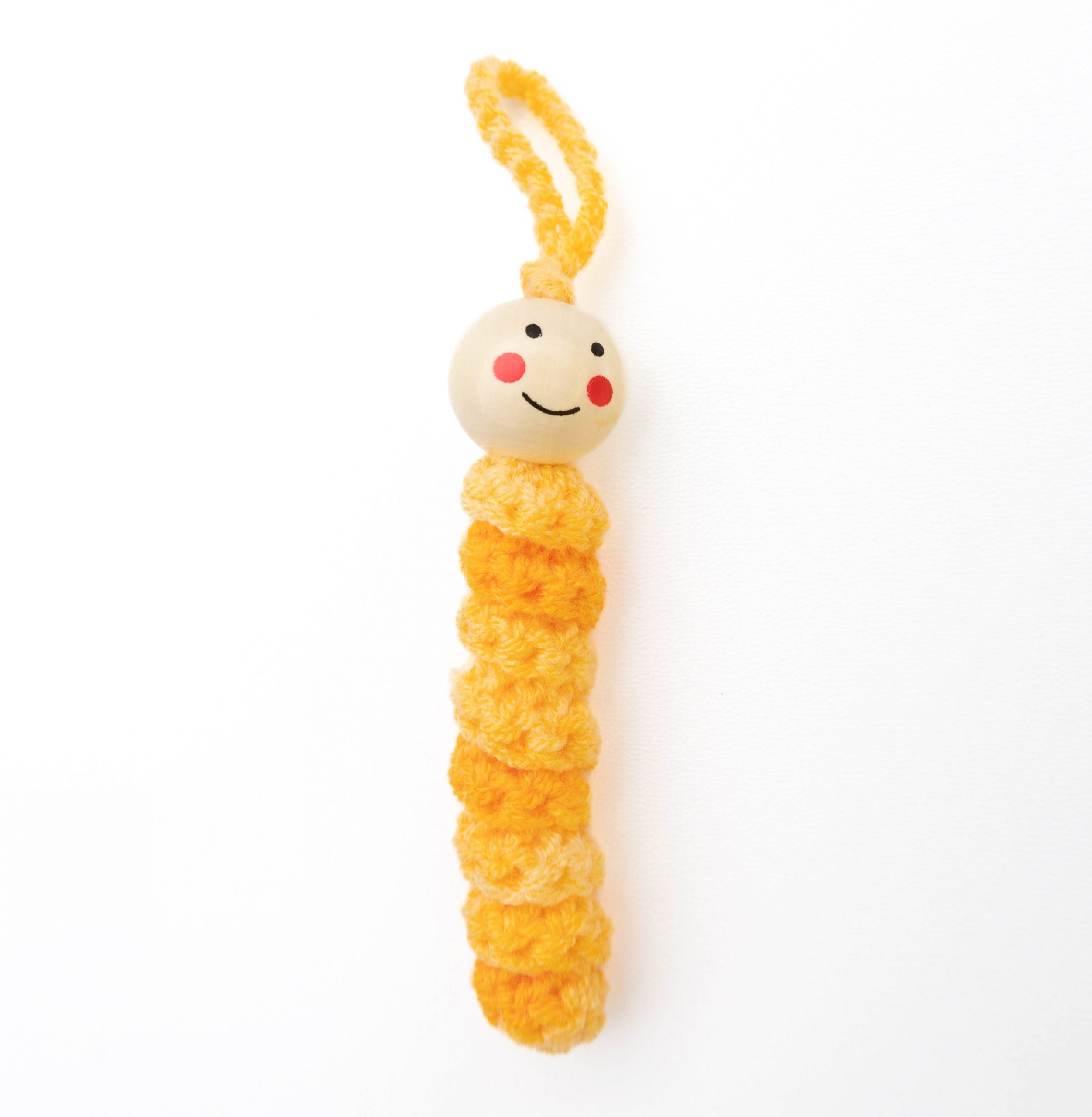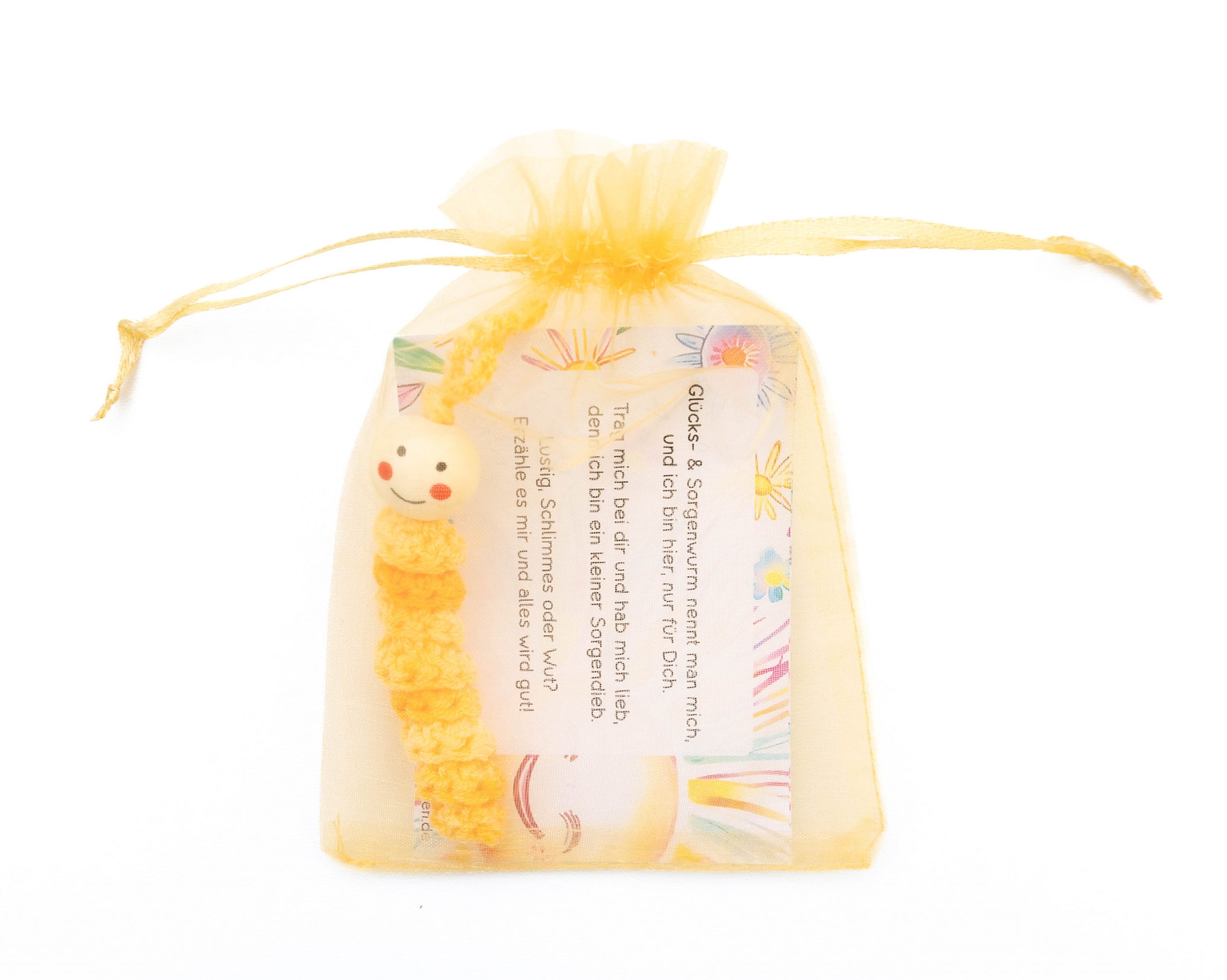 Sorgenwürmchen Glückswürmchen Worry Worm handmade gehäkelt in Gelb