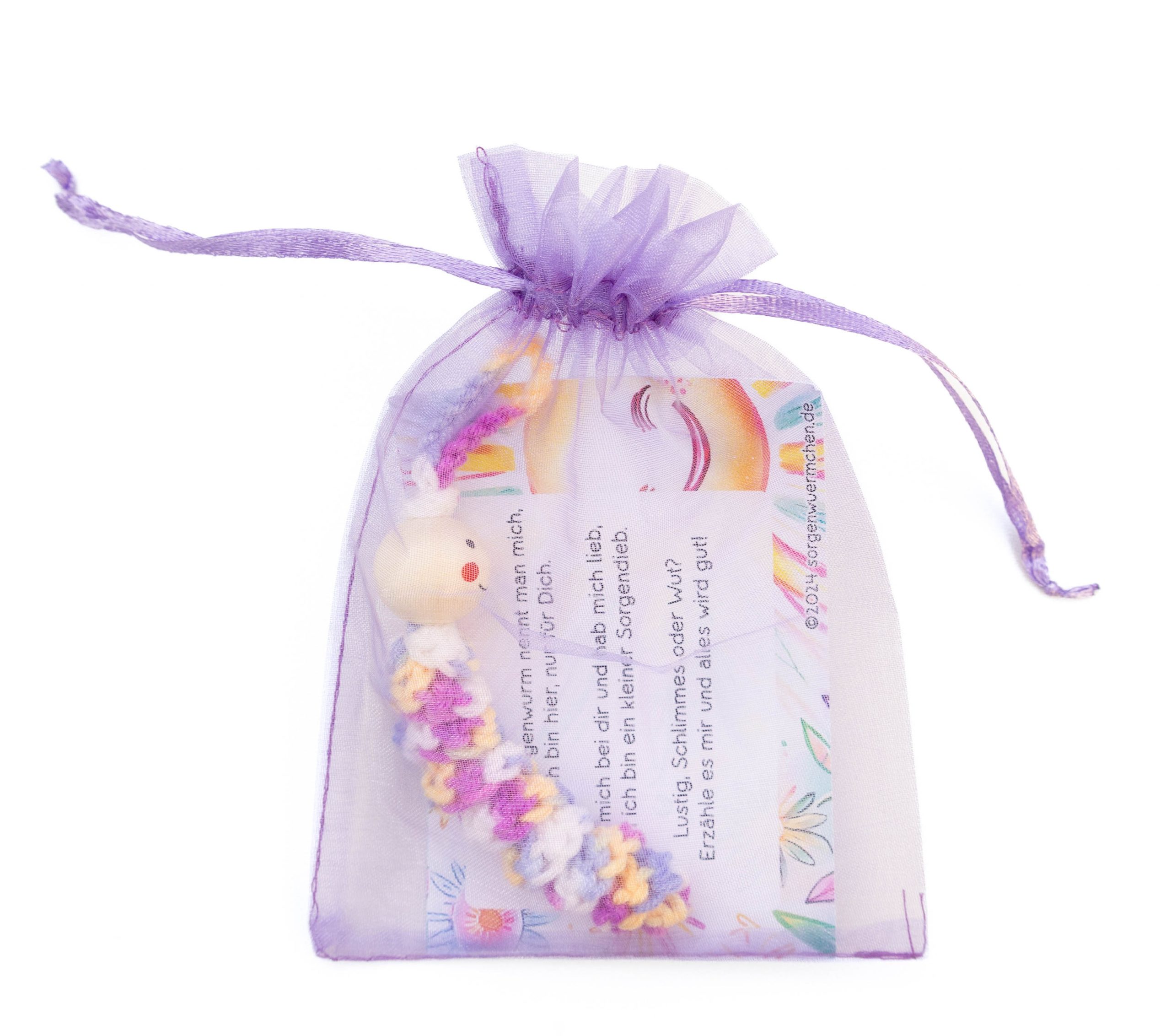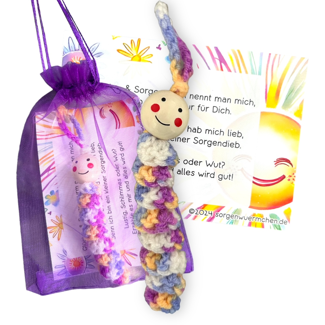 Sorgenwürmchen Glückswürmchen Worry Worm handmade gehäkelt in Lila